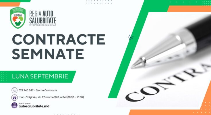 Î.M. Regia „Autosalubritate” informează că, în luna septembrie 2025, au fost semnate peste 100 de contracte noi privind evacuarea deșeurilor municipale.